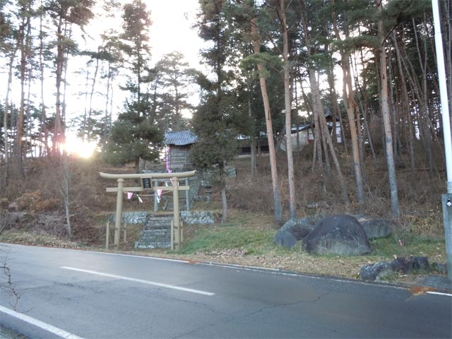 親に神社の大体のある場所を聞いていったのですが、想定の場所には無く、ぐるっと周って芸術村の中にある明神池の付近をもう一度歩いて帰ろうと思ったら、その場所にありました。(^^;;;![]()