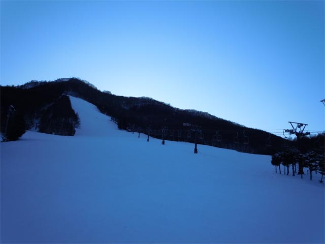 午後3時半近くになり、かなり日が落ちて随分涼しく(寒く)なってくるにつけ、ただでさえ少なかった滑ってる人がどんどん減ってきて、僕も足がパンパン。膝も痛くなってきたので、そろそろ上がることにしました。![]()