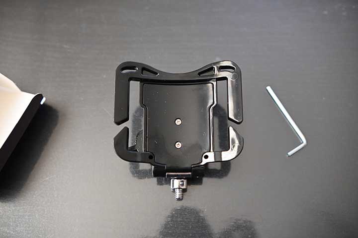 この金具をカメラに付けて、棒の先の宮の部分をくぼみにハメて保持するようです。(Z30撮影)