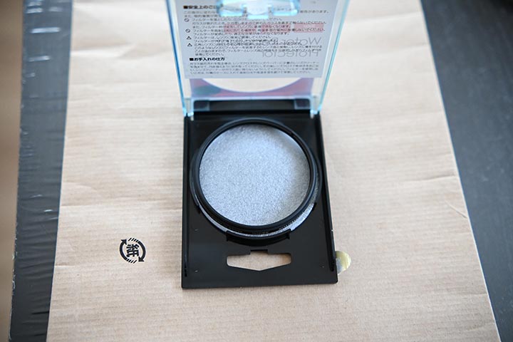 裏のチルト液晶に保護フィルターをうつけるのに、届いていた保護フィルターの箱を開けたところ。(Z30撮影)