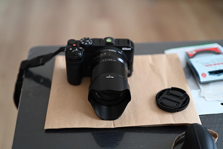 こちらも昨日届いていたVILTROXの単焦点レンズ、AF 50mm F2.0 Airを取り付けます。(Z30撮影)