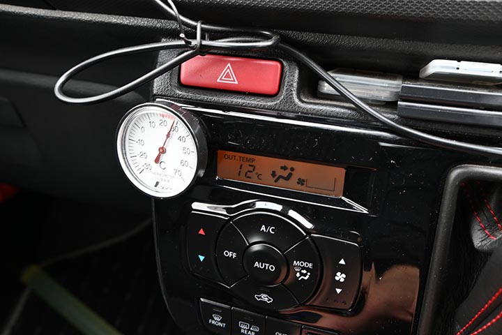 帰り着いた時の車外気温と車内気温。(Z30撮影)