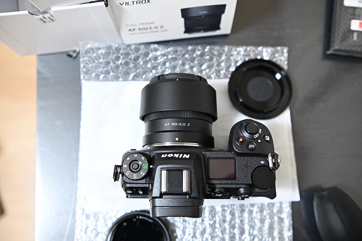 こちらも昨日届いていたVILTROXの単焦点レンズ、AF 50mm F2.0 Airを取り付けます。(Z30撮影)