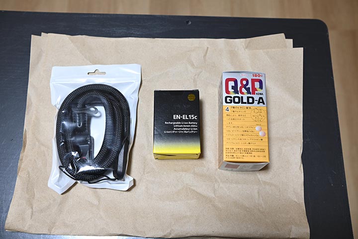 強堅牢三脚・紐ストラップ・栄養剤・電池 到着