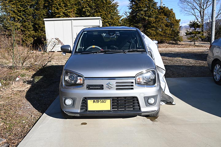 一昨日、昨日の暴風で、フロントガラスに被せておいたカバーが風で剥がされて辛うじて風下側に残っていました。