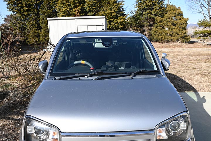 午後、アルトのワイパーをシングルゴムのデザインワイパーから、先日Temuで購入した水切り部が複数あるワイパーに交換してみることにしました。(Z30撮影)