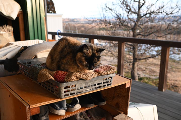家に入って台所から外を見ると、ココ(♀)が寒い中外で丸まってました。(Z30撮影)