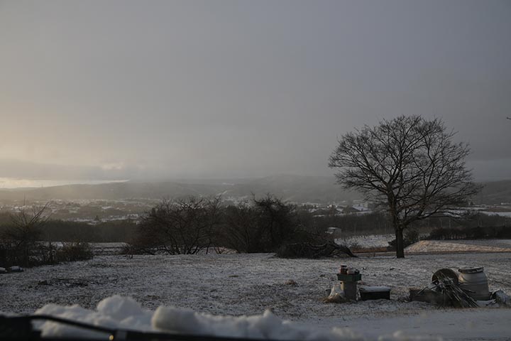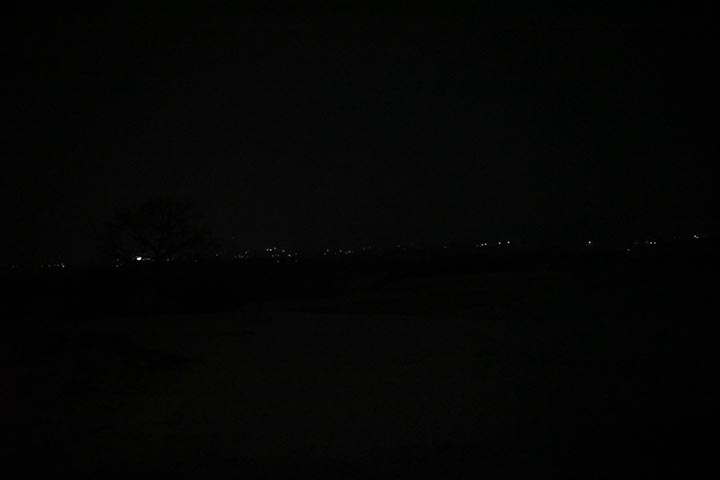 F値は何で4.0にしてしまったか不明ですが、何とか前の畑に雪が積もっているのが撮れました。