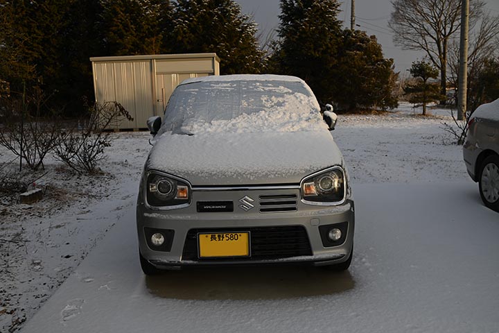 フロントガラスカバーが役に立って、カバーを剥ぐとフロントガラスは全然凍ってもいませんでした。
