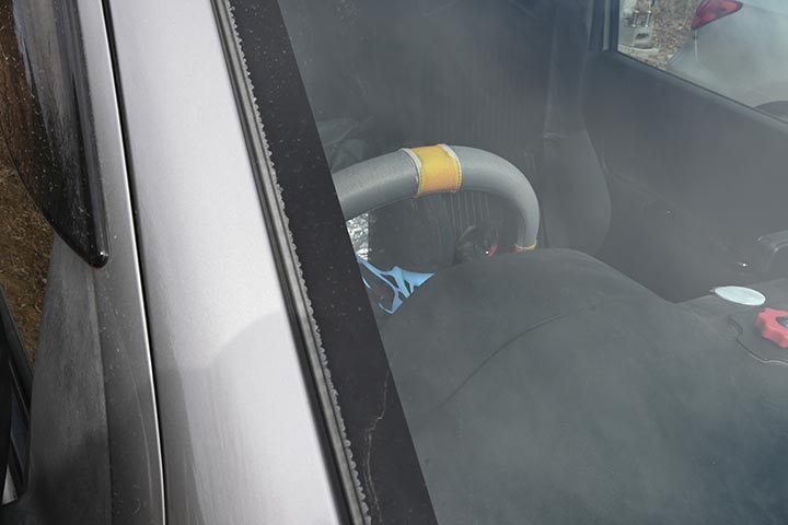 窓が雪道を走ったせいで泥水を被って汚れていたのと、久しく掃除していないのとで窓の内側も汚れていたので、内外とも水拭きしました。(Z30撮影)